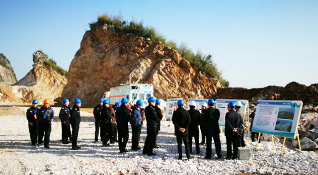 2017年12月18日下午,公安部三局马维亚副局长、张国亮副处长在浙江省公安厅副厅长金伯中、治安总队总队长阮文广、副总队长程华、调研员周卫华、杭州市公安局特警支队支队长周郑、治安支队支队长张文根、副支队长王瑞理以及西湖区公安分局、双浦派出所等有关部门同志陪同下,在云开官方入口石龙山南侧废弃矿山治理工程项目部现场观摩了混装炸药装填、爆破一体化过程作业,并在项目部召开了混装炸药应用座谈会。